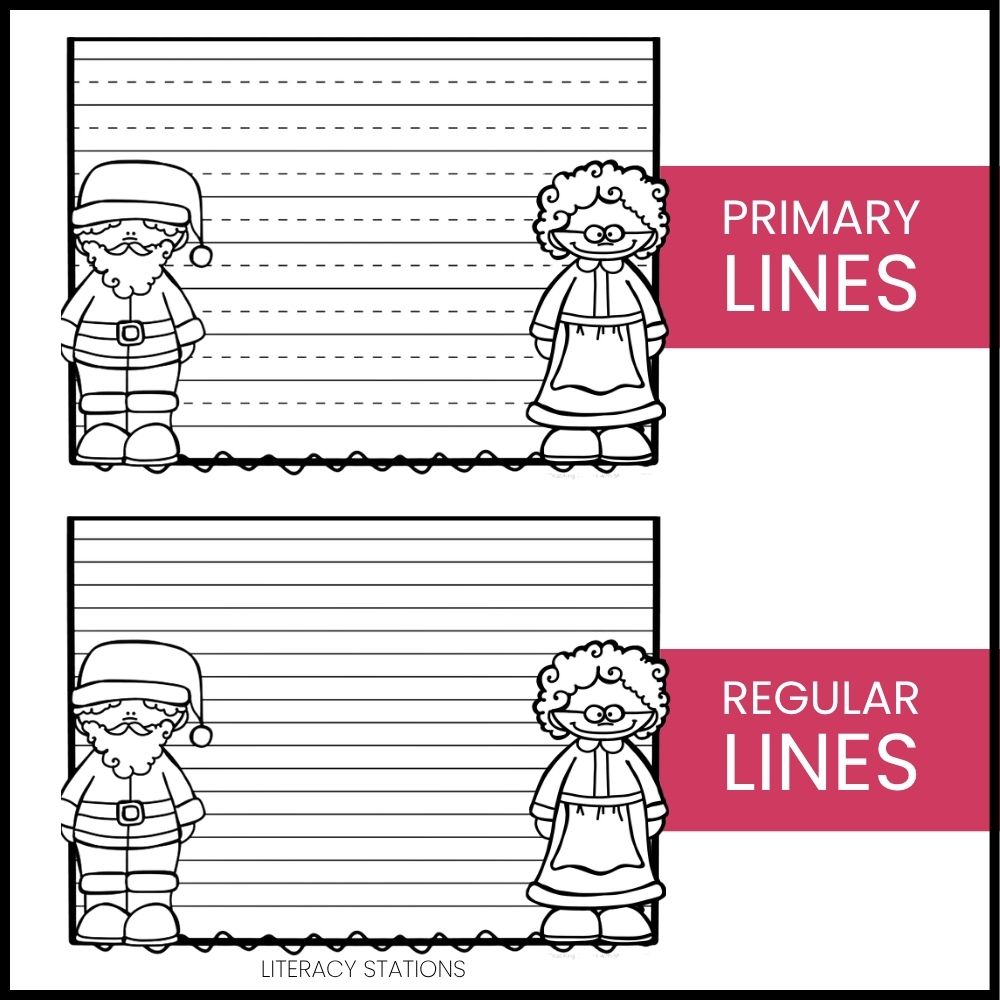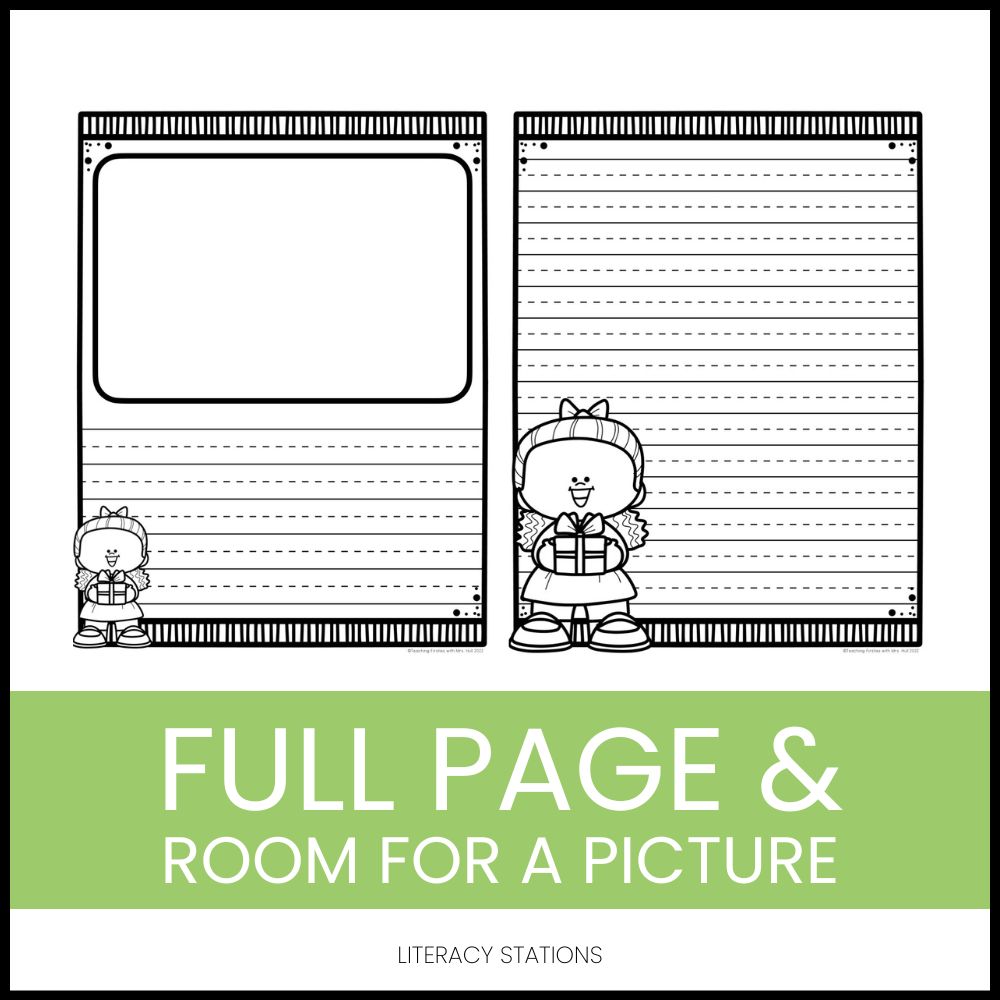 It’s easy to differentiate your Christmas writing activities with options for full-page or half-page layouts, primary or regular lines. This makes it the perfect elementary lined paper for kids to use for holiday writing projects.