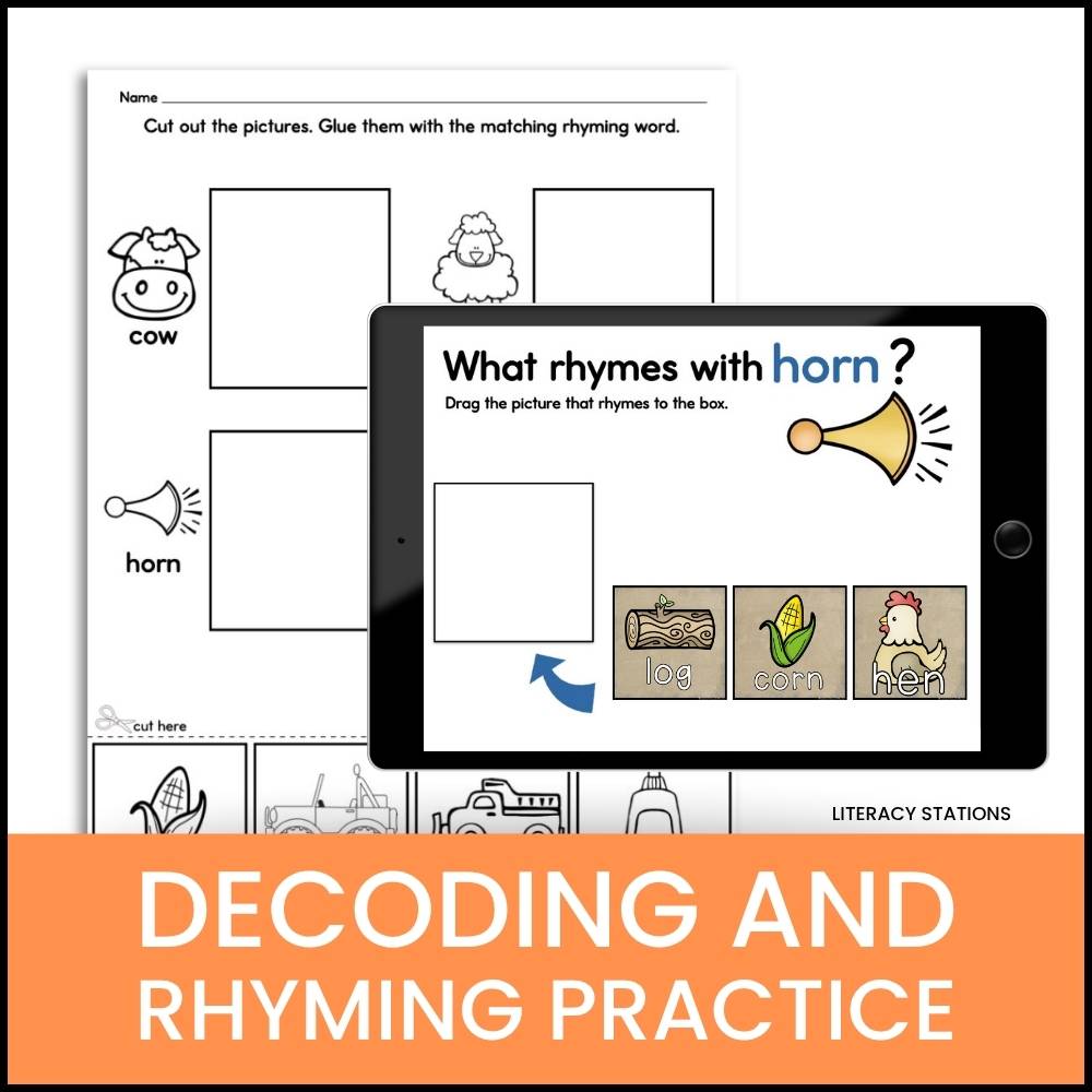 Rhyming Page: Students practice phonological awareness by matching words from the poem with new rhyming words in a cut-and-paste activity.