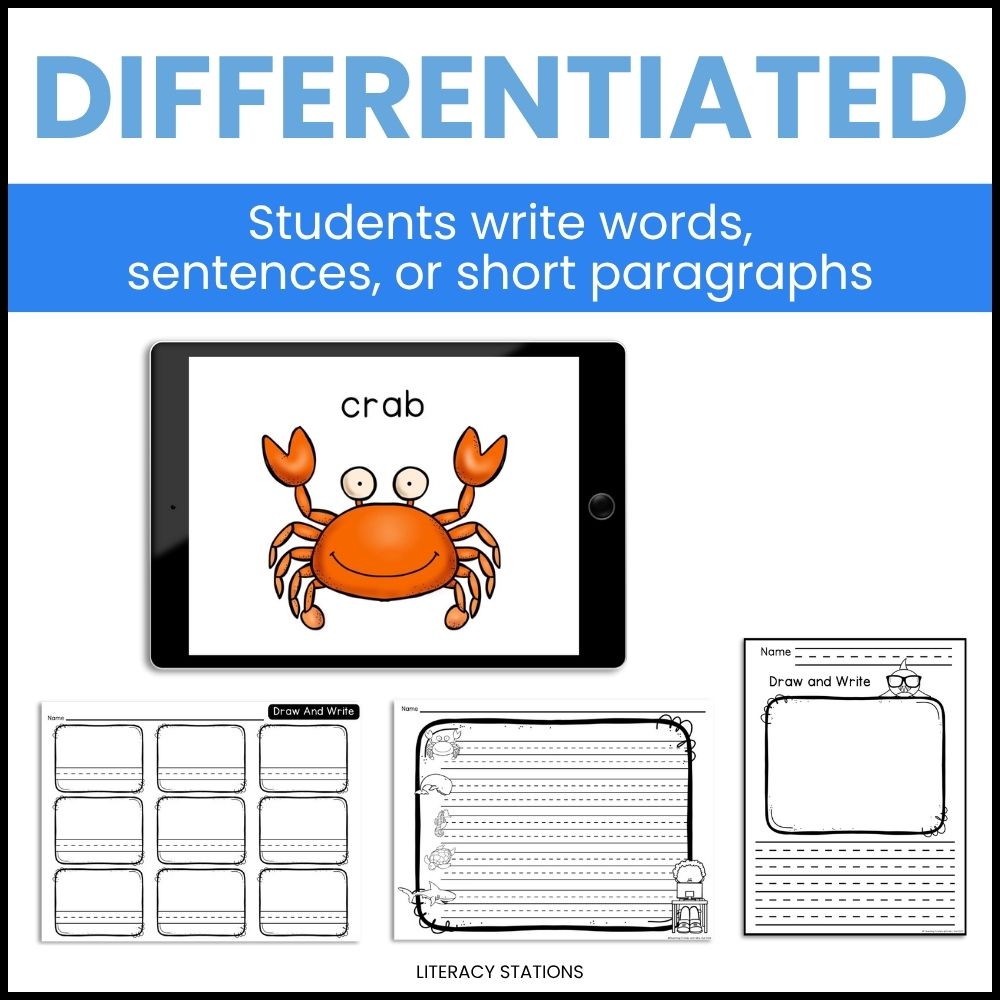 Download the Ocean Animals Writing Center and get everything you need for an easy-to-use, differentiated writing resource.