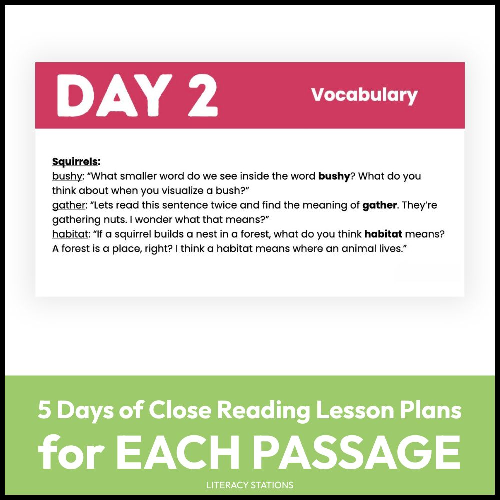 Use the close reading passages and lesson plans during your reading block or for small group instruction. Each passage has a week of close reading lesson plans included.