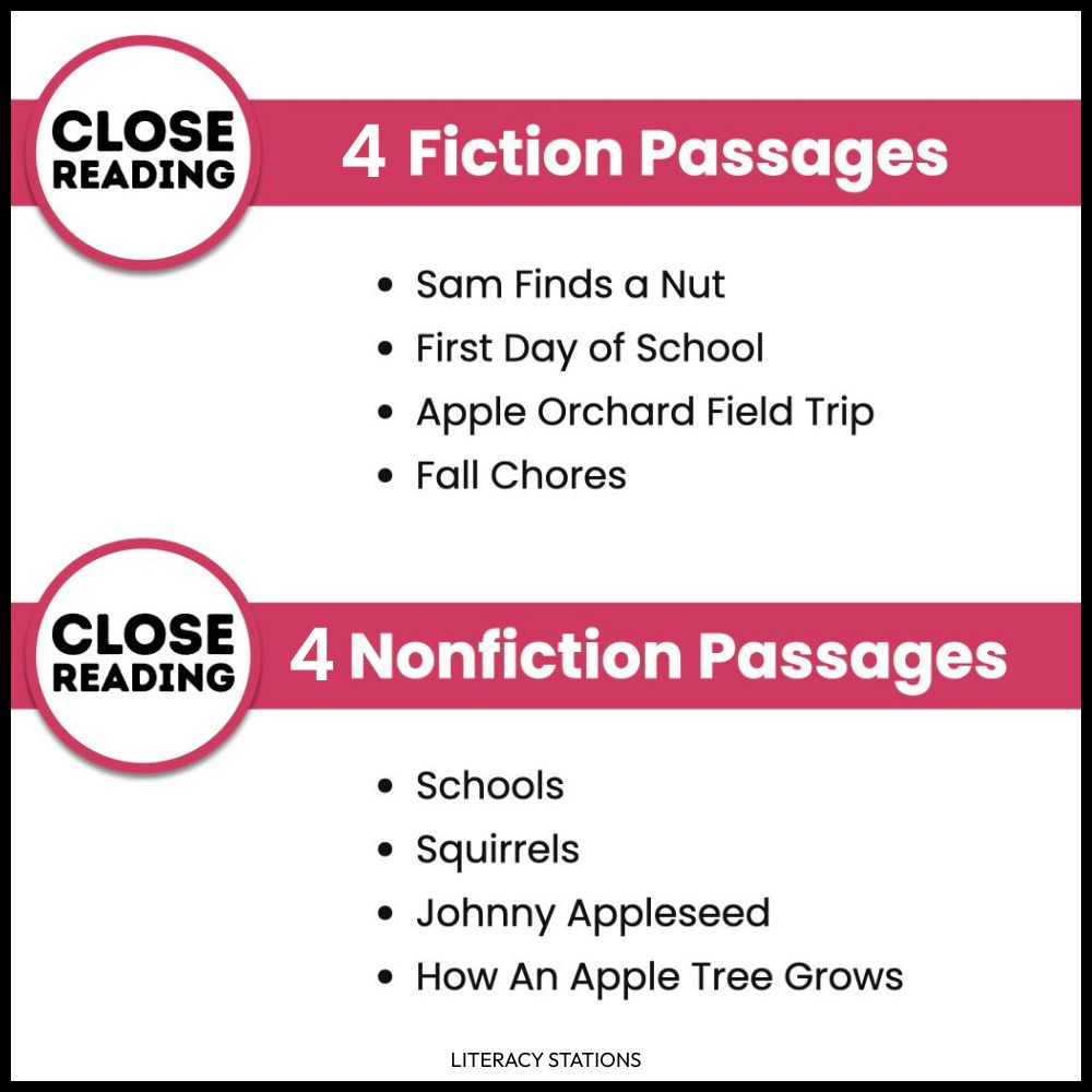 Consistent close reading strategies help first grade students strengthen vocabulary, improve comprehension, and build fluency. This set of September close reading passages include eight close reading texts—four fiction and four nonfiction. Each reading passage is supported by five days of lesson plans.