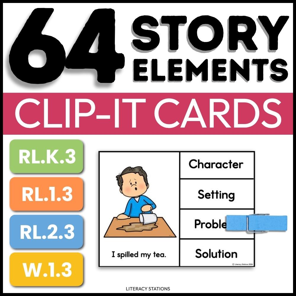 Hands-on and engaging. Students sort, clip, and match their way through story elements instead of filling out another worksheet.